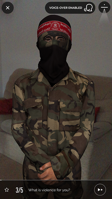 Going back to The Enemy, after I faced the character and got introduced to his enemy, a series of questions starts and are asked to the main character and his enemy by the voice over. The interviews were original interviews where the character was talking in his mother language with the voice over playing a translation here I had the opportunity to either keep it on or switch it off. However, at this point I had a concern that I couldn’t choose the questions that were asked to the character! As a user, I might not be interested in this specific question or I wanted to ask another one.