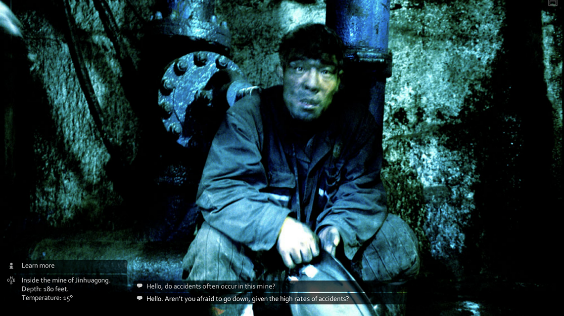 This reminded me of a project I have experienced before called Journey To The End Of Coal, an interactive documentary web done by Samuel Bollendorff and Abel Ségrétin in 2008. The project was showing the depths of coal mines in China by positioning the users as an investigative journalist to go through the cities and meet different people, government officials, truck drivers, pollution victims and coal mine workers who risk their lives every day, it also gives the users the chance to ask them different questions. In this project, the user was given two different options of questions to ask the interviewee which made me feel that I have more freedom. However, in The Enemy, in my opinion, the author intentionally didn’t give options of questions as he wanted to focus on specific topics to deliver the project’s purpose.